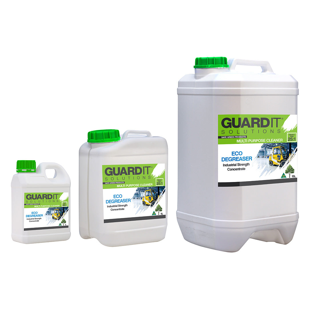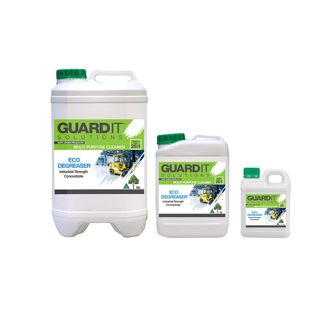 GuardIT® Soy Safe Eco Degreaser is an environmentally-responsible, soy-based multipurpose degreaser which contains no toxic chemicals and is highly effective in the removal of soot, grease and oil from all surfaces. Ideal for use on concrete, metals, brick, terracotta, bluestone, masonry and all other porous and dense surfaces.
